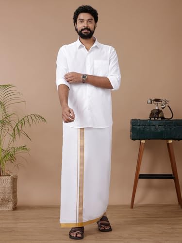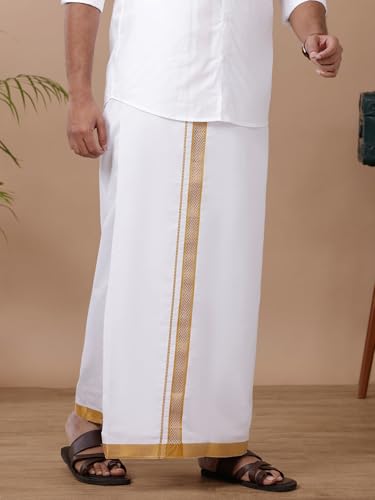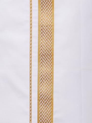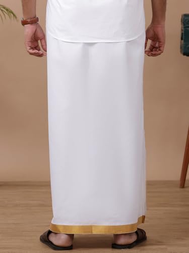 KITEX Men Samrat Plus Light Ivory Cotton Kara Double Dhoti, Kerala Munde - Pure Cotton Ivory Double Dhoti -Temple Wear Dhoti Black Colour Wide Border