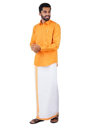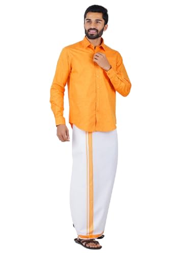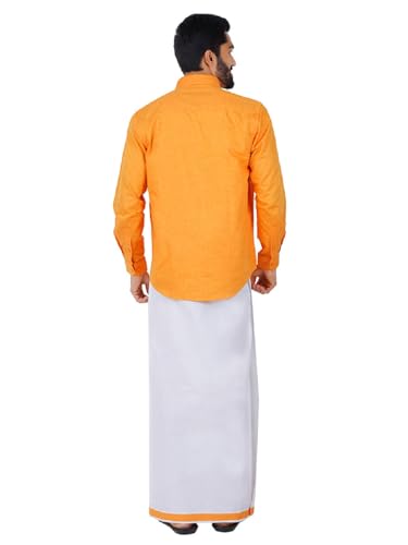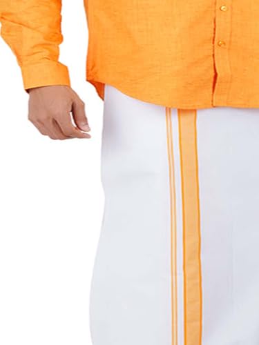 RAMRAJ COTTON Men Pack of 2 White Dhoti with Gold Jari 3/4 Border