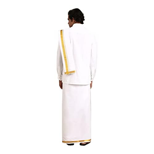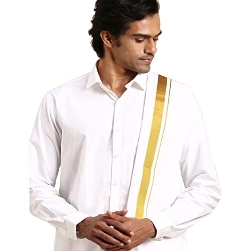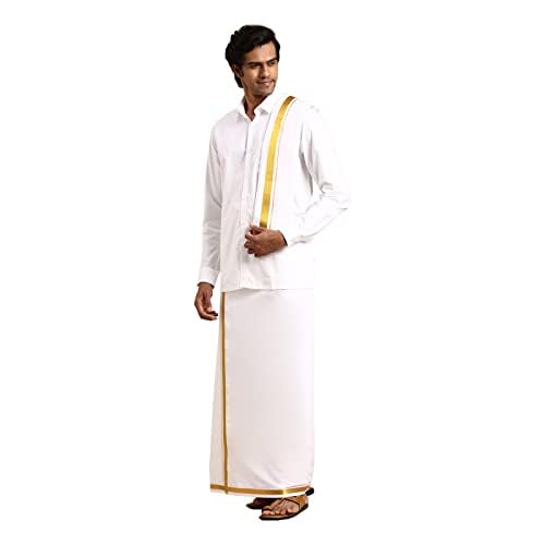 RAMRAJ traditional half sleeve shirt with adjustable matching fancy border dhoti for men