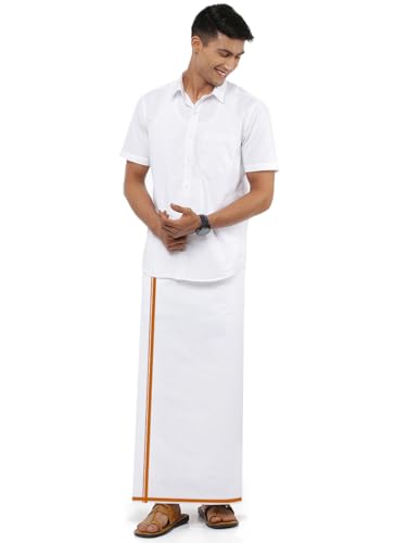 RAMRAJ COTTON traditional full sleeve shirt and gold jari border dhoti for men