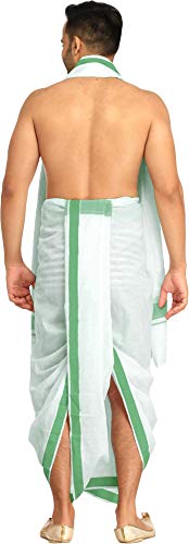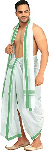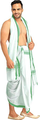 RAMRAJ COTTON trending full sleeve shirt and 3/4 gold jari border dhoti for men with towel and belt
