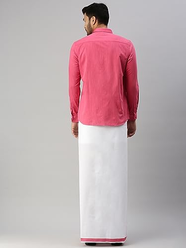 KITEX Samrat Pride White Cotton Double Dhoti - Dark Blue Colour Border PRD05