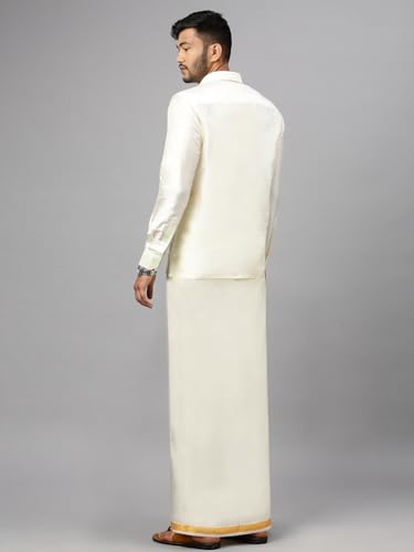 RAMRAJ COTTON tradtional half sleeve shirt with border dhoti for men