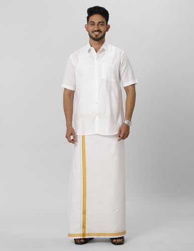 RAMRAJ COTTON full sleeve shirt with gold jari 1/2 inch border dhoti for men