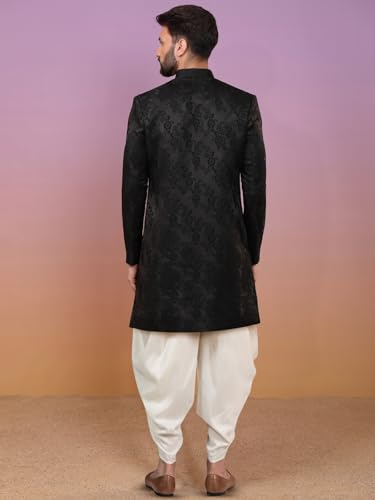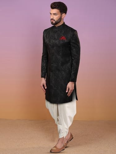 KISAH Men's Indo-Western Kurta Sherwani Dhoti Set, Multi Cotton Blend, Jacquard Regular Fit Mandarin Collar Long Sleeves