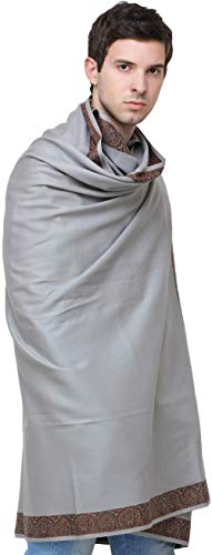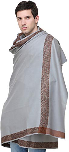 Pashtush Woven Mens Wool Stole, Check-Stipe Design, Mens Muffler, Warm Cashmere Feel