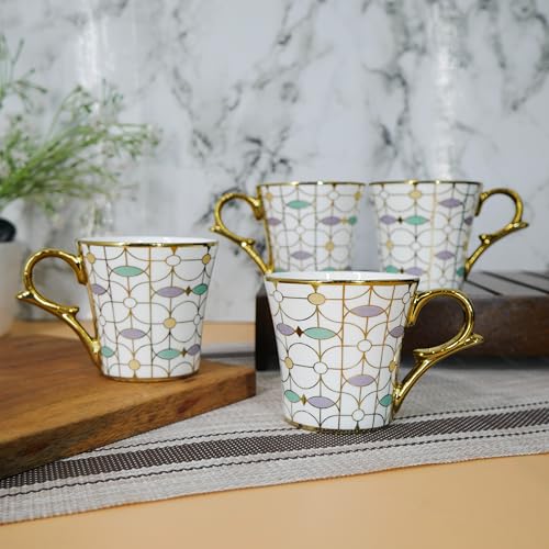 Larah by BOROSIL Opalware Fern Cup and Saucer Set, 140Ml, 12-Pieces, White
