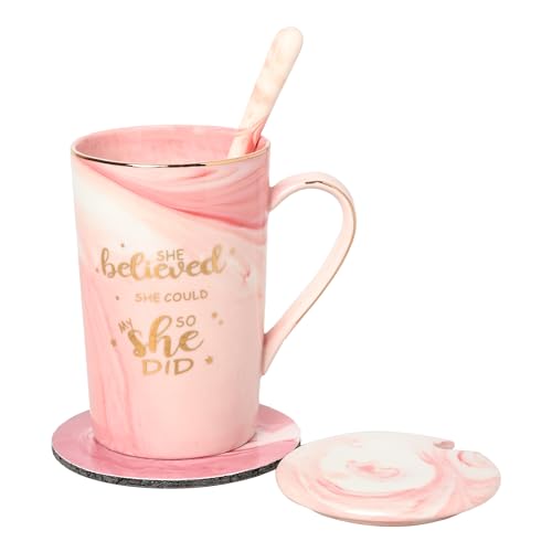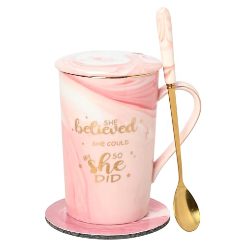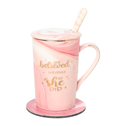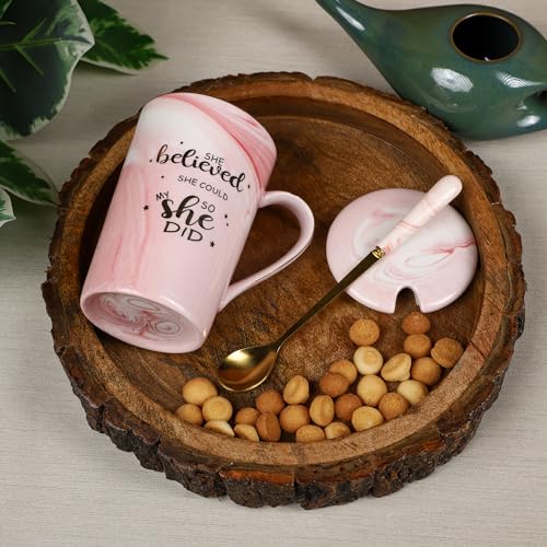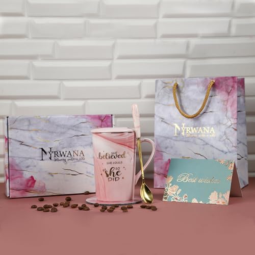 NYRWANA Coffee Mug, Birthday Gift for Sister, Gift for Women Birthday Special, Mugs for Gift, Ceramic Mug, Coffee Mug with Lid, Birthday Gift for Girls, Mug with Spoon & Gift Box (400ml - Pink)
