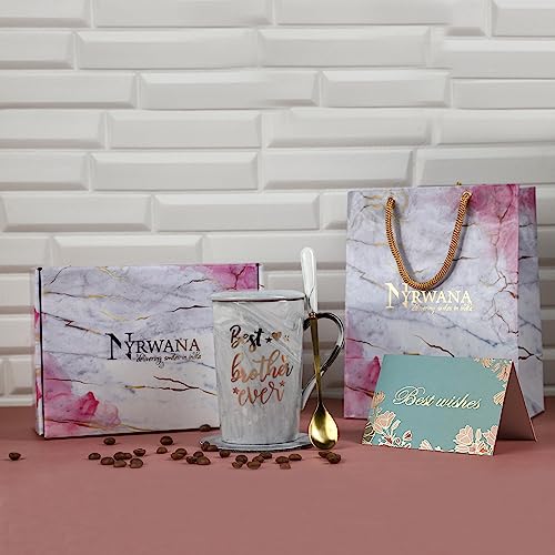 NYRWANA Coffee Mug, Birthday Gift for Wife, Gift for Women Birthday Special, Mugs for Gift, Ceramic Mug, Coffee Mug with Lid, Gift Items for Women Birthday, Mug with Spoon & Gift Box (400ml - Pink)