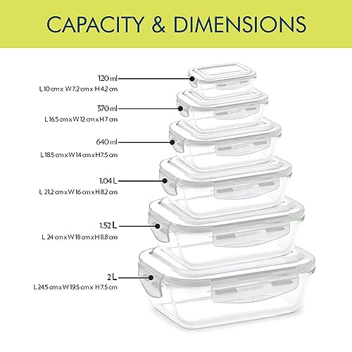 Borosil Klip N Store 2pc Set Round Glass Food Storage Container with Air Tight Lid (620 ml Each) | Borosilicate Glass Container for Lunchbox | Microwave & Dishwasher Safe | Transparent