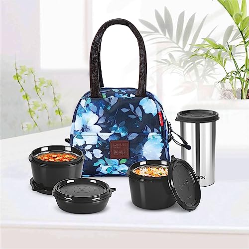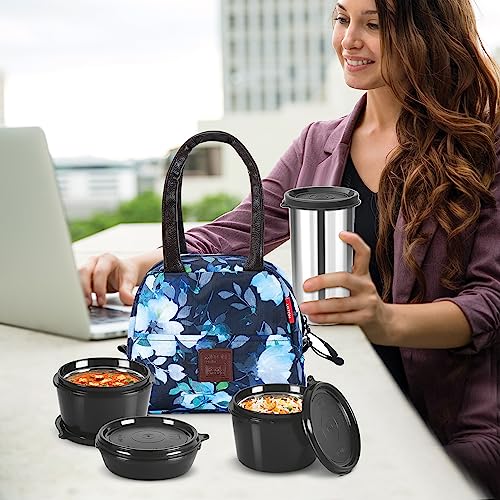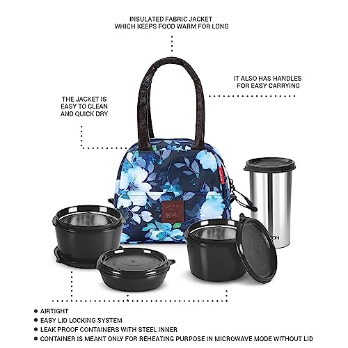 Borosil Glass Aroma Lunch Box Set of 4, (3 pcs 320 ml + 1pcs 120 ml) Microwave Safe office Tiffin, Blue, Transparent