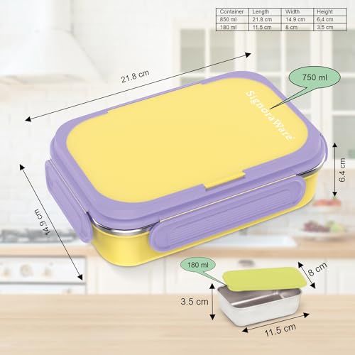 SIGNORA WARE Stainless Steel Slim Lunch Box With Lid (1000 Ml, Red)