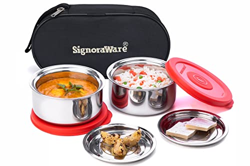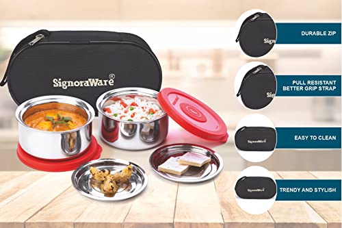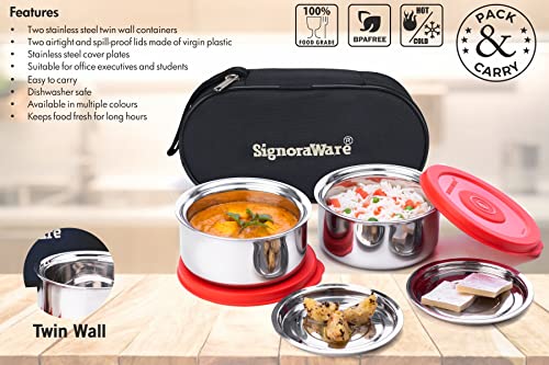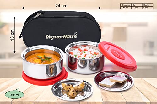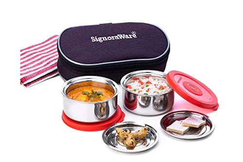 MILTON Bling Bag Tiffin (3 Inner Stainless Steel Containers 320 ml Each and 1 Tumbler, 380 ml with Jacket, Grey | Light Weight | Leak Proof | Easy to Carry | Food Grade