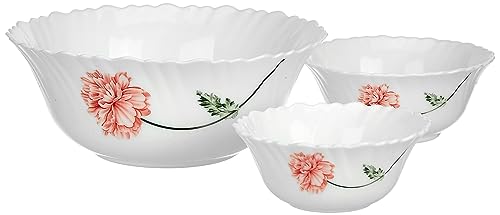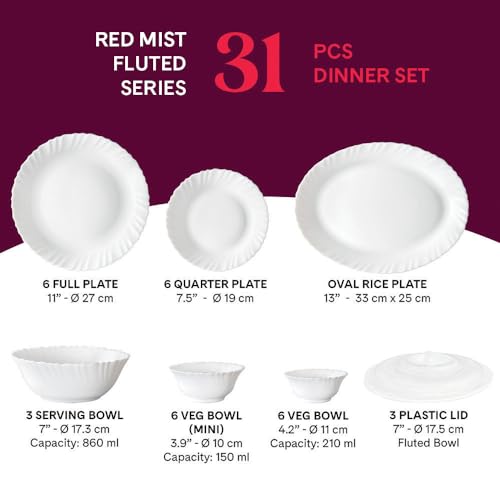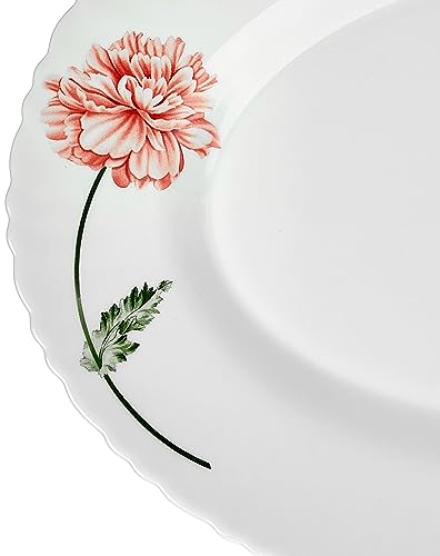 Larah by Borosil Ora Gold Fluted Series Opalware Floral Dinner Set|33 Pieces for Family of 6|Microwave&Dishwasher Safe|Bone-Ash Free|Crockery Set for Dining&Gifting|Plates&Bowls|White
