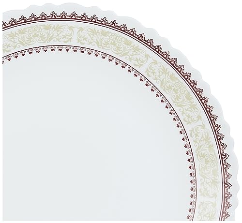 Larah by BOROSIL Fluted Series Red Carnation Opalware Dinner Set | 27 Piece for Family of 6 | Microwave & Dishwasher Safe | Bone-Ash Free | Crockery Set for Dining & Gifting | Plates & Bowls | White
