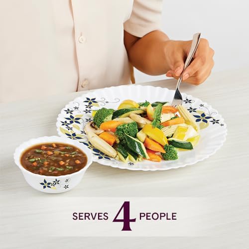 Larah by Borosil Ocean Fluted Series Opalware Dinner Set | 27 Pieces for Family of 6 | Microwave & Dishwasher Safe | Bone-Ash Free | Crockery Set for Dining & Gifting | Plates & Bowls | White