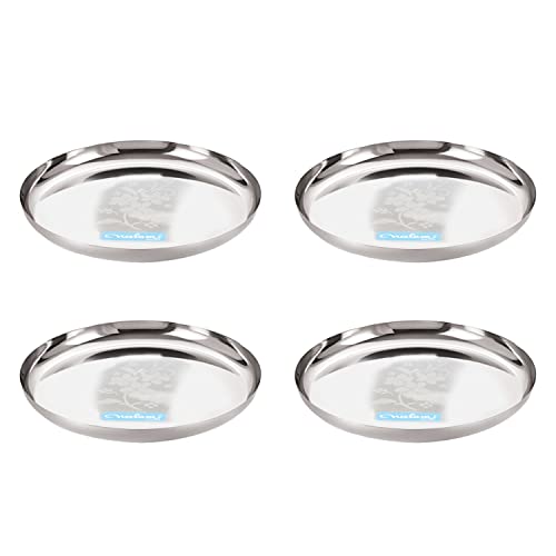 Neelam Stainless Steel 12 22G Diamond Buffet Plate, 28 cm, Silver, Set of 6