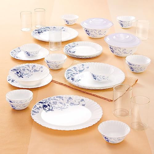Larah by Borosil Pansy Fluted Series Opalware Dinner Set | 66 Pieces for Family of 6 | Microwave & Dishwasher Safe | Bone-Ash Free | Crockery Set for Dining & Gifting | Plates & Bowls | White