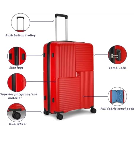 Nasher Miles Hawaii TSA Lock and Anti-Theft Hard-Sided Polypropylene Luggage Set of 3 Maroon Trolley Bags |Suitcase Set(55, 65 & 75 cm)