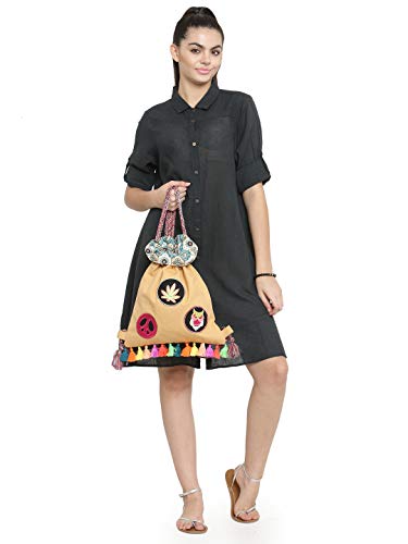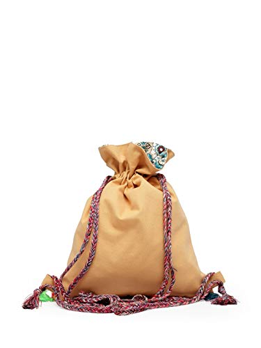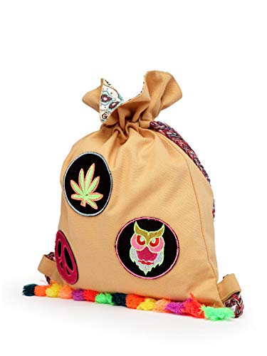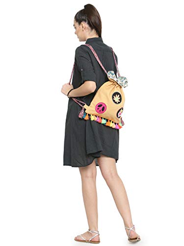 The House of Tara Canvas Backpack for Men & Women 2 Ltr | Casual Cotton Bags with Tassels, Drawstring Closure & Soft Braided Straps | Printed Backpacks Suitable for College, Travel & Beach (Dark Grey)