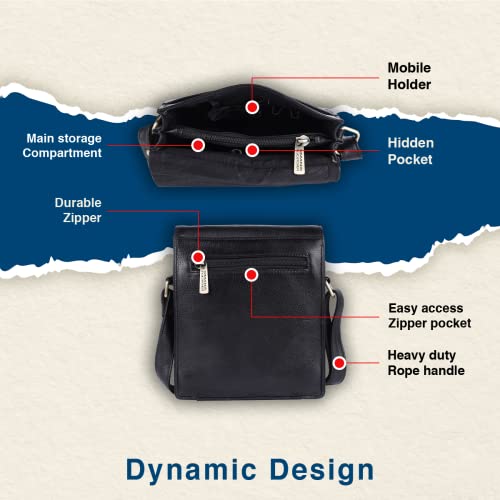 WildHorn? Original Leather 9 inch Sling Bag for Men I Multipurpose Crossbody Bag I Travel Bag with Adjustable Strap I DIMENSION: L- 8 inch H- 9 inch W- 3 inch