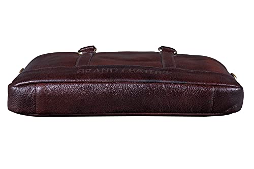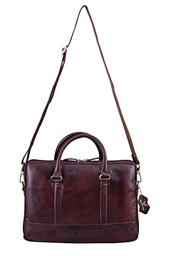 RICHSIGN LEATHER ACCESSORIES Expandable 24 litres Full Grain Natural Leather Laptop Briefcase Messenger Shoulder Bags for Men Office 15.6 Inch (L-16 X H-12 X W-5 Inch) (Weight- 1.2 KG / 1200 GR)