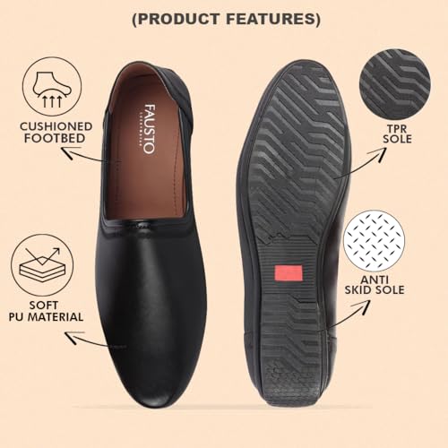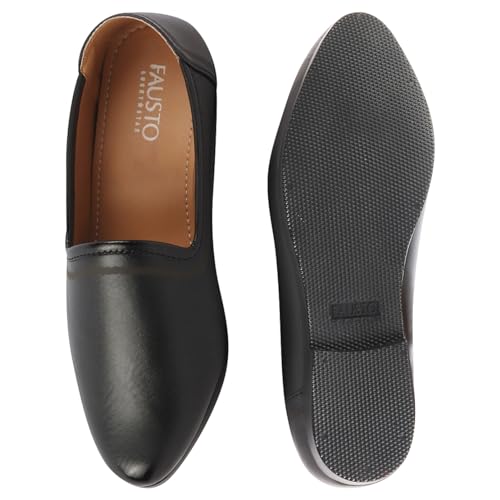 FAUSTO Men's Silk Embroidered Zardozi Ethnic Slip On Juttis and Mojaris for Wedding|9 Colors|1-14UK Small Plus Sizes|Traditional Kurtas & Sherwani Shoe