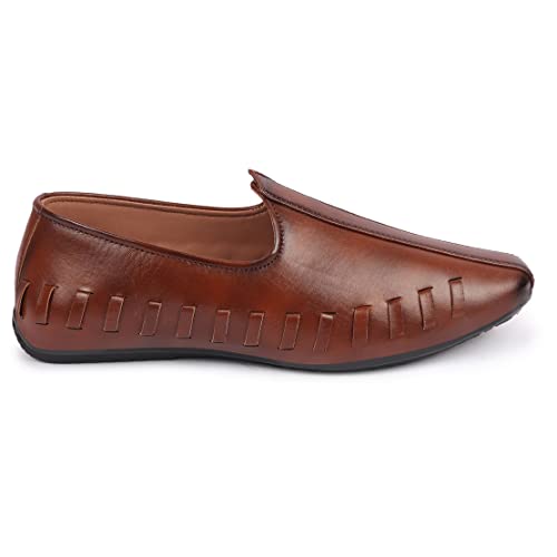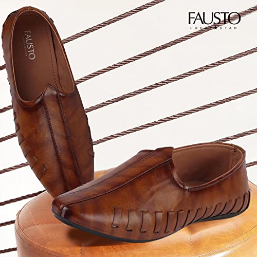 FAUSTO Men's Embroidery Sequin Ethnic Slip On Juttis and Mojaris for Wedding|Traditional Sherwani Shoes|Slip-On for Nehru Jackets