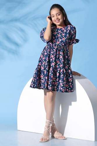 Hopscotch Girls Full-Sleeve Floral Print Mini Casual Dress
