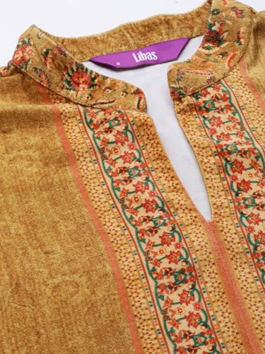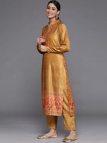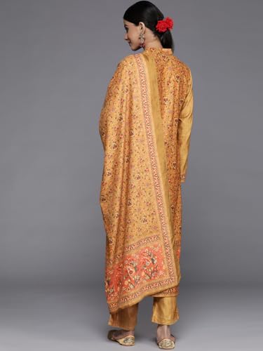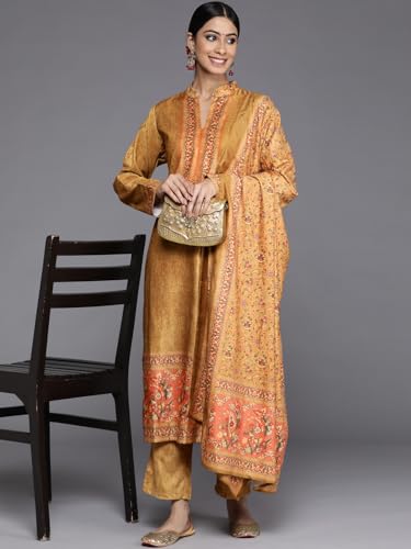 Libas Off White Printed Silk Blend Straight Kurta with Trousers & Dupatta
