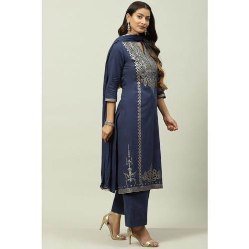 Libas Blue Woven Design Chanderi Silk Straight Kurta With Trousers & Dupatta