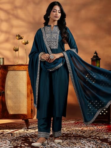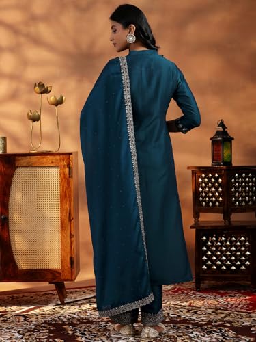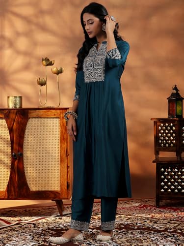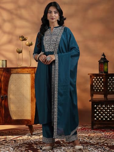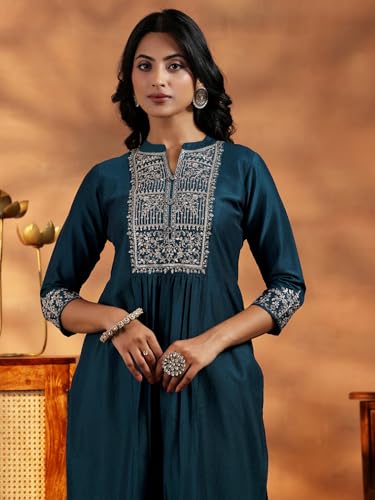 Libas Off White Printed Cotton A-Line Kurta With Palazzos