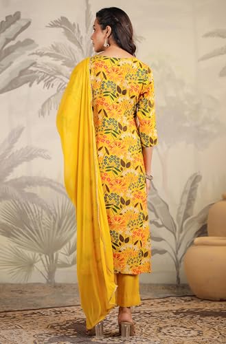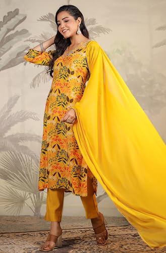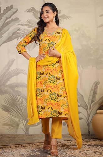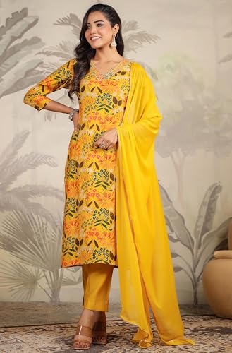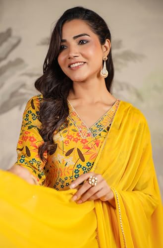 Janasya Women's Brown Georgette Floral Printed Empire Kurta with Palazzo Set