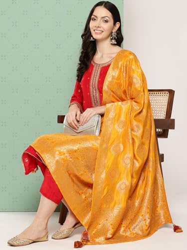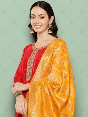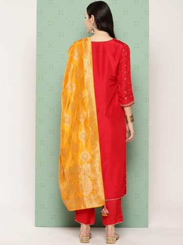INDO ERA Women's Embroidered Organza Calf Length Straight Kurta Pant With Dupatta Set (Shutr7996)