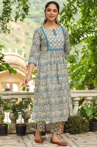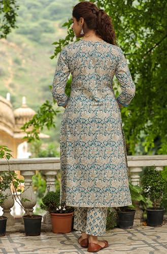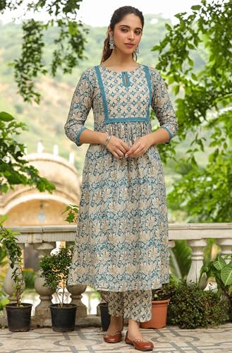 INDO ERA Women's Embroidered Silk Blend Straight Kurta Pant With Dupatta Set (Kh9Lv7982)