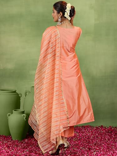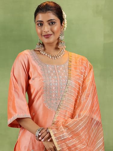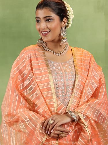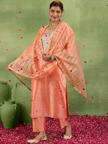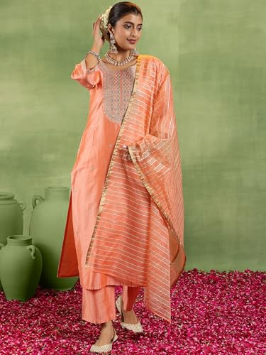 Libas Blue Printed Poly Crepe Straight Kurta With Trousers & Dupatta