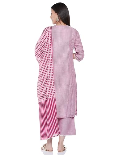 Janasya Women's Pink Georgette Digital Floral Printed Kurta with Palazzo and Dupatta