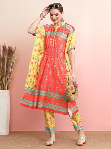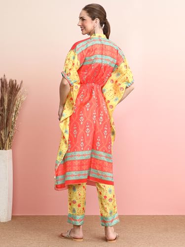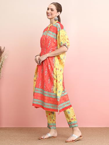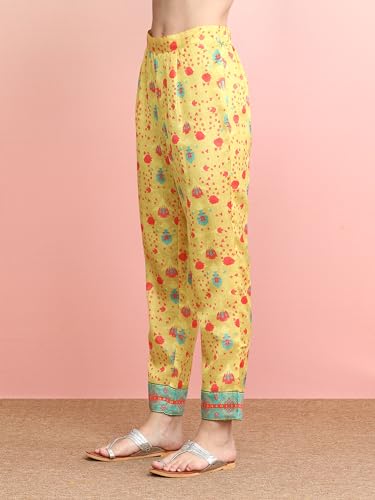 Libas Off White Yoke Design Cotton Anarkali Kurta With Trousers & Dupatta