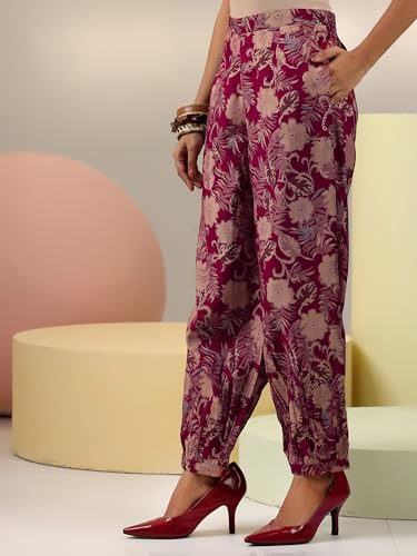 Libas Pink Printed Cotton A-Line Kurta With Palazzos & Dupatta