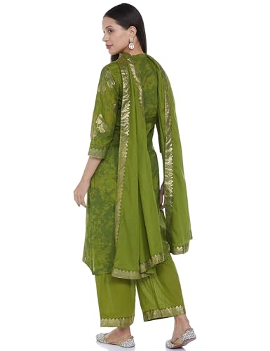 Libas Grey Embroidered Georgette Anarkali Kurta With Trousers & Dupatta