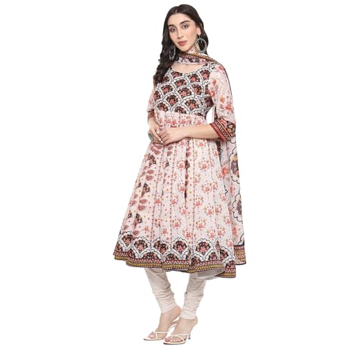 Miss Ethnik Women's Peach Chinon Stitched Top With Stitched Chinon Bottom and Chinon Dupatta Full Sleeve Embroidered Straight Top (ME-1192)