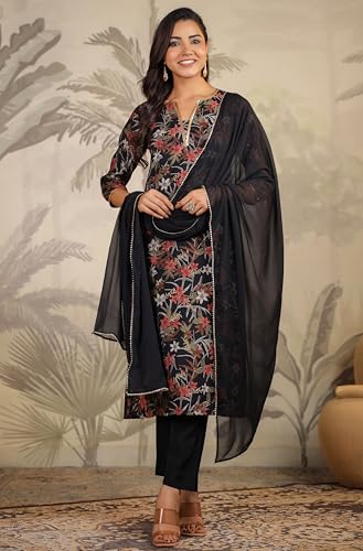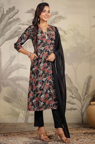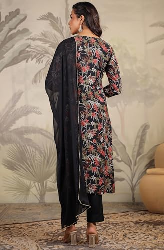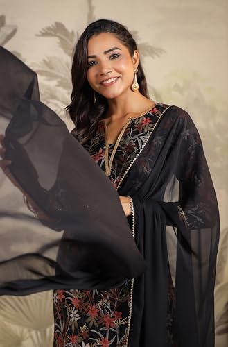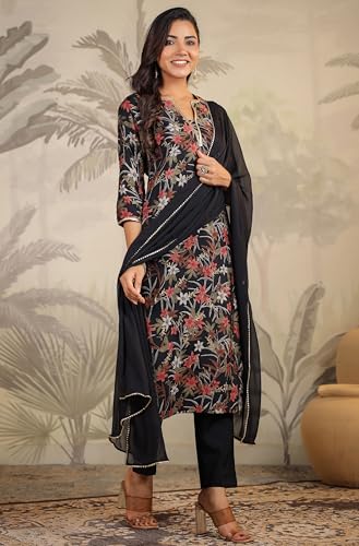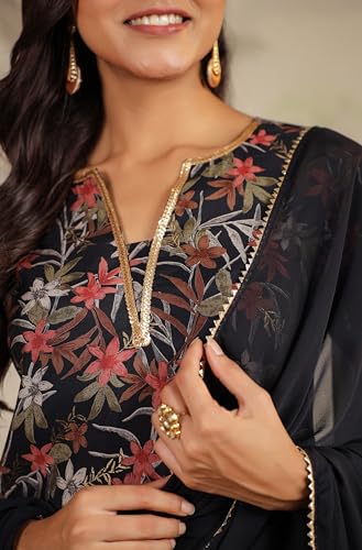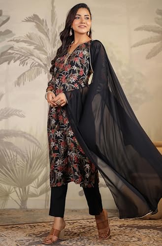 Miss Ethnik Women's Mehendi Chinon Stitched Top with Stitched Chinon Bottom and Chinon Dupatta Full Sleeve Embroidered A-line Top (ME-1200)