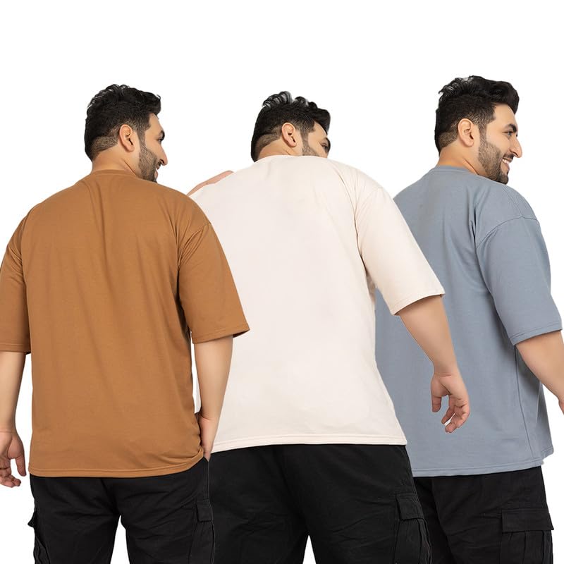 LEOTUDE Cottonblend Oversized Half Sleeve Colorful Printed Combo T-Shirts for Mens (Pack of 2)