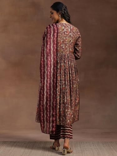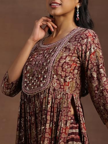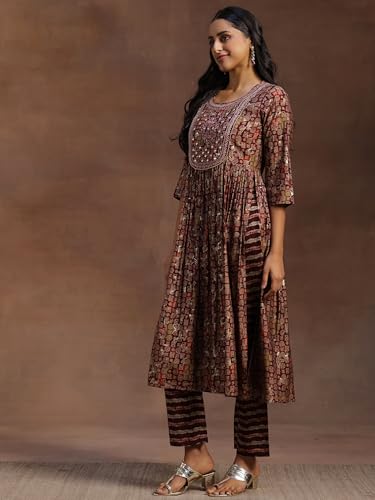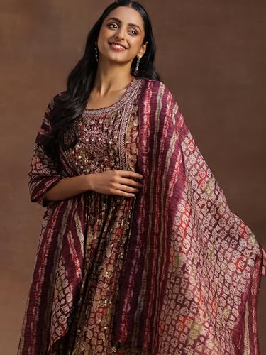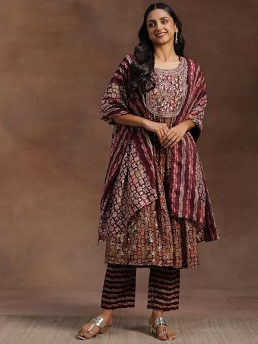 INDO ERA Women's Silk Blend Floral Embroidered A-line Kurta Palazzo with Dupatta Set