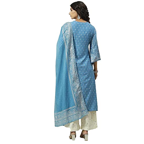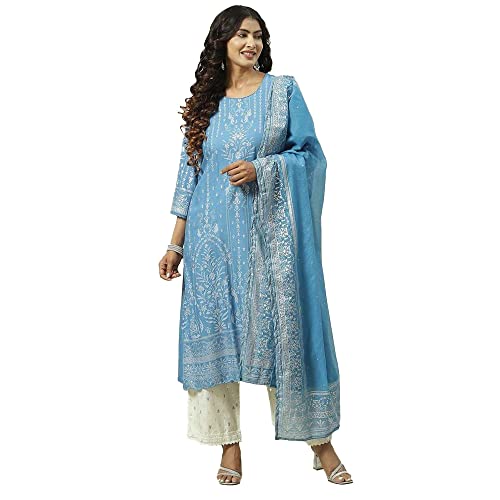 Miss Ethnik Women's Yellow Chinon Stitched Top With Stitched Chinon Bottom and Chinon Dupatta Full Sleeve Embroidered Straight Top