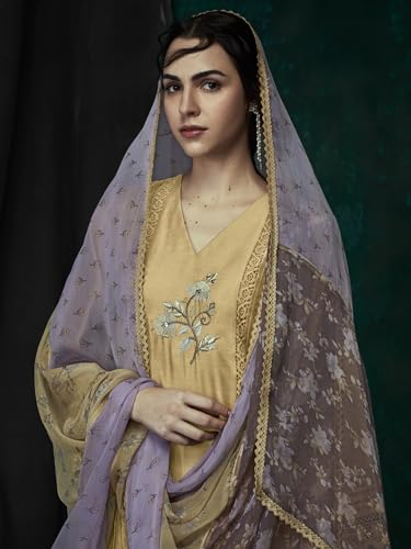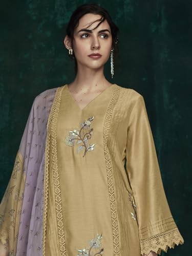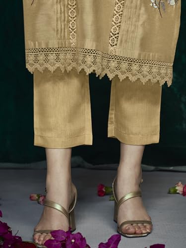 Libas Peach Printed Silk Blend Straight Kurta With Trousers & Dupatta