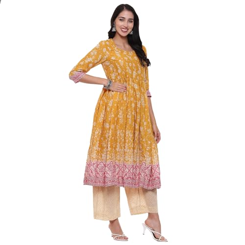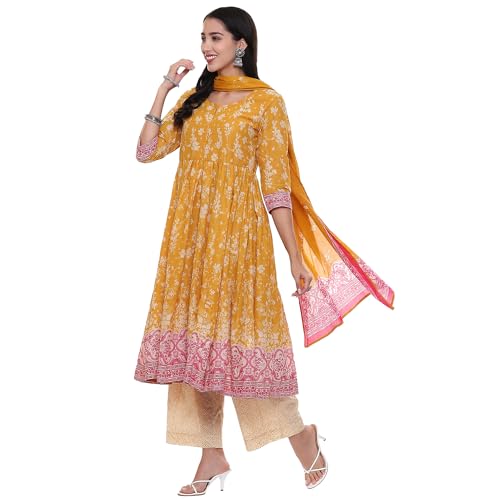 RAJMANDIRFABRICS Women's Cotton Floral Embroidered Anarkali Kurta Pant With Dupatta Set