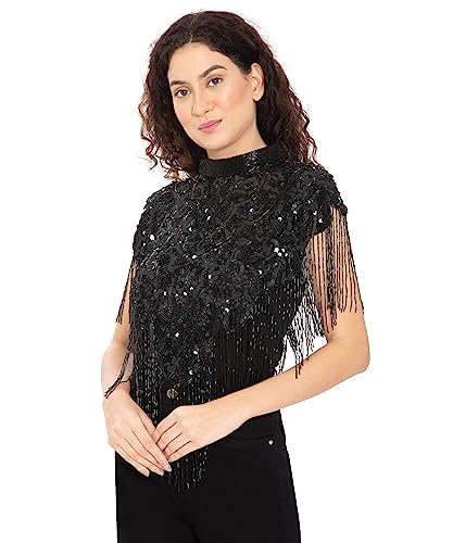 MANRA Women's Elegant Knitted Shawl Poncho with Fringed V-Neck with Pearls Solid Sweater Pullover Cape Gifts for Women Mom (SC 108)