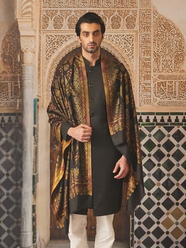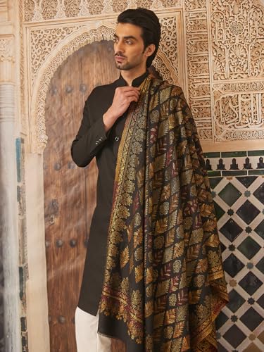 tweedle Men’s Ethnic Shawl/Stole for Winters, Plain Self Design Check with Floral Palla (40 x 80 Inches)