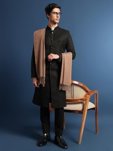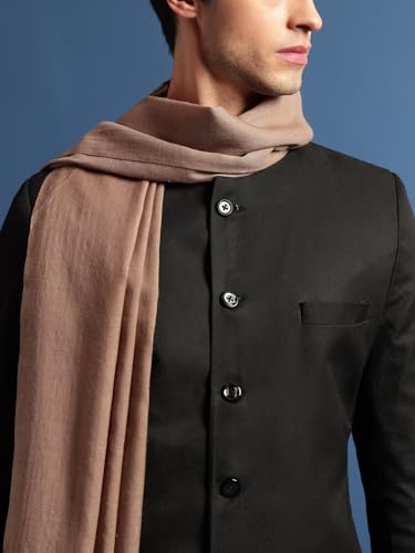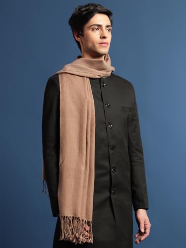 Pashtush Mens Wool Silk Stole, Soft Geometric Woven design, Blue